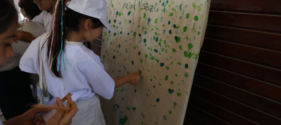 Geleceğe Mektup etkinliğinde çocuklar doğayı koruyacaklarına dair sözler verdiği mektuplar yazarken atıklardan yaptıkları resim ve 3 boyutlu sanatsal ürünleri sergilediler.