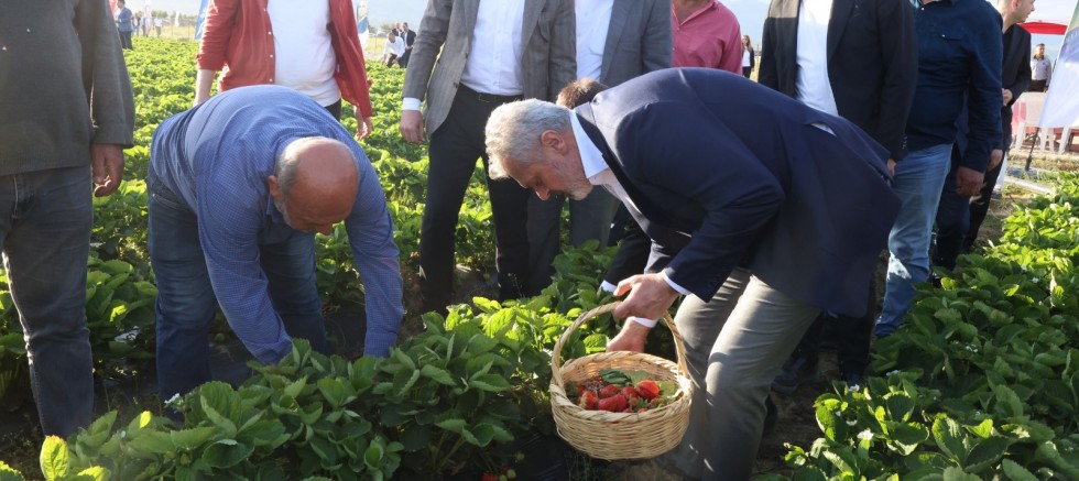 HBB Başkanı Mehmet Öntürk, Hassa’da Büyükşehir tarafından kırsal kalkınmayı desteklemek amacıyla üreticilere dağıtılan çilek fidelerinin ilk hasadına katılarak çiftçilerle birlikte çilek topladı.