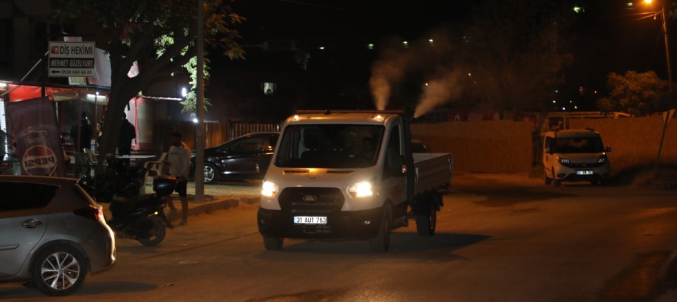 Hatay Büyükşehir Belediyesi (HBB), sıcaklıkların artmasıyla birlikte haşere ve sineklerle mücadele kapsamında gece ilaçlama çalışmalarını yoğunlaştırdı.