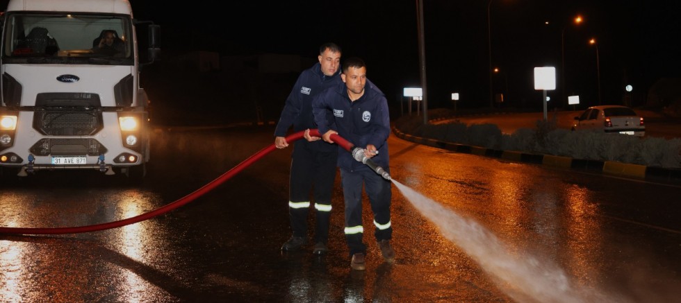 HBB Çevre Koruma ve Kontrol Dairesi Başkanlığı, temizlik çalışmaları kapsamında yol kenarlarında biriken çamurların trafikte tehlike oluşturmaması ve çevre kirliliğine sebep oluşturmaması amacıyla Antakya ve Defne ilçelerinde gece ve gündüz olmak üzere temizlik çalışmaları sürüyor.